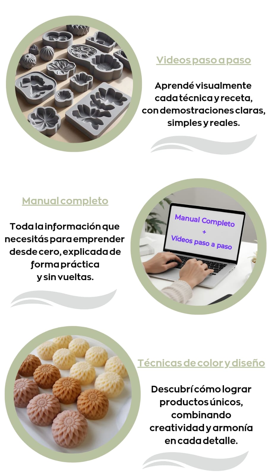 Depende de vos 💪🏻 Pero desde el primer día ya vas a poder crear tus propias piezas. En una tarde podés tener tus primeros jabones listos, y con un poco de práctica vas a dominar las técnicas y estilos que más te gusten.